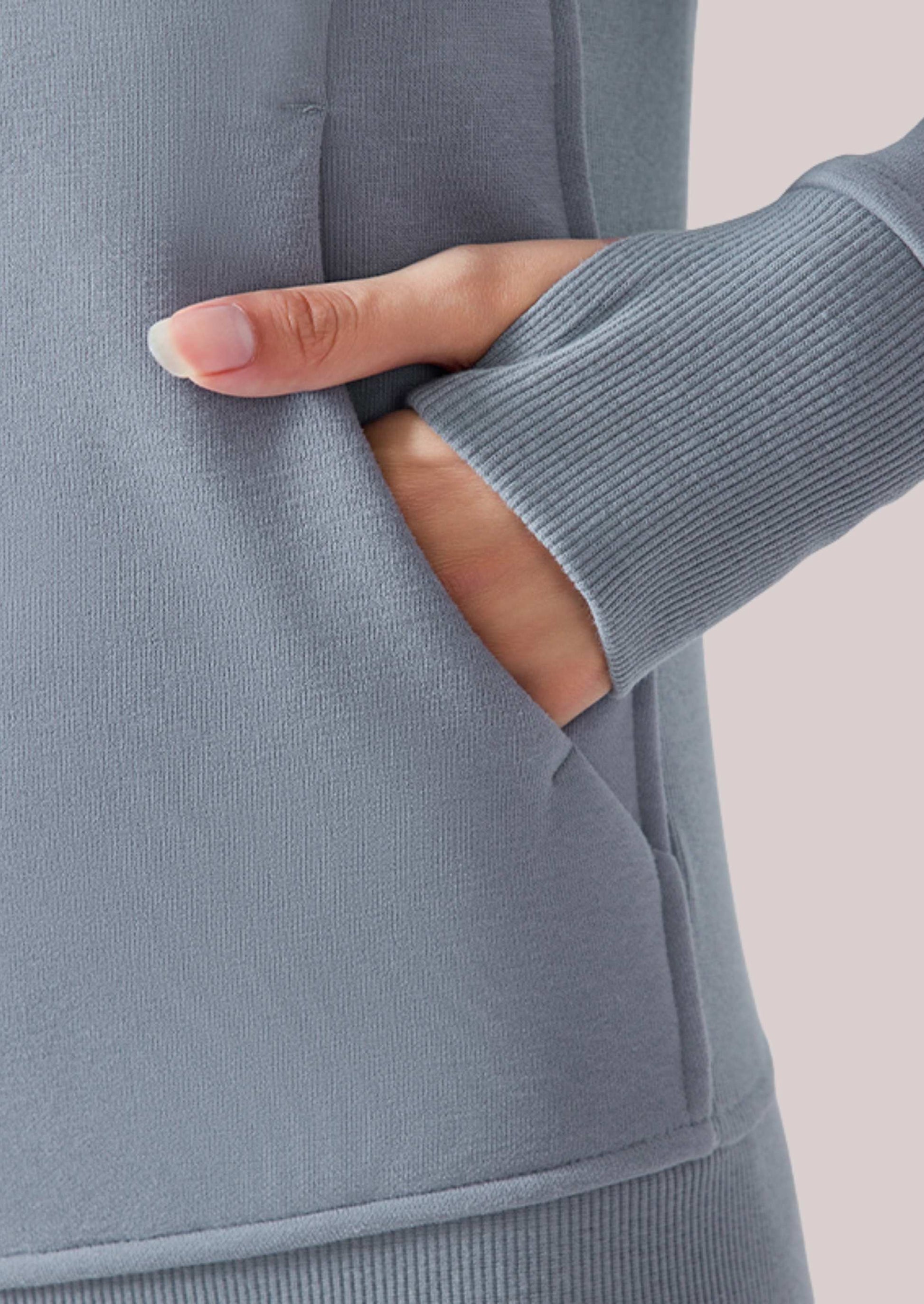 Your new winter favorite. Heavyweight brushed fleece (380 gsm) with a flattering raglan cut that sculpts the silhouette and feels amazing on strong shoulders. Double-layer hood + front panel, snug ribbed cuffs with thumbholes.